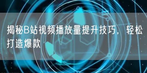 在B站这个充满活力与创意的平台上,每个创作者都梦想着自己的视频能够成为爆款,收获无数点赞与关注。然而,面对海量的视频内容,如何让自己的作品脱颖而出,成为观众心中的“那一抹亮色”呢?本文将为你揭秘B站视频播放量提升的技巧,助你轻松打造爆款。
